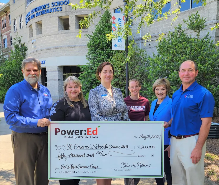 HARTSVILLE, SC – June 11, 2024 — The SC Governor’s School for Science & Mathematics Foundation has been awarded a $50,000 grant from Power:Ed, the philanthropy of SC Student Loan Corporation, to support the continued growth and expansion of the Governor School for Science & Mathematics (GSSM) GoSciTech Summer Camps. This grant, currently one of the largest in foundation history, provides scholarships for students in financial need and supports a new initiative where guidance counselors provide information to families on successfully navigating the education and career pathways for their children.