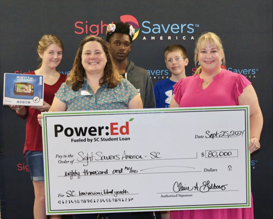 FLORENCE, SC - September 26, 2024 - Sight Savers America has been awarded an $80,000 grant from Power:Ed, the philanthropy of SC Student Loan Corporation, to assist 24 middle and high school-age youth in SC living with severe visual impairment and blindness by providing high-tech vision assistive equipment and blindness aids for personal use.